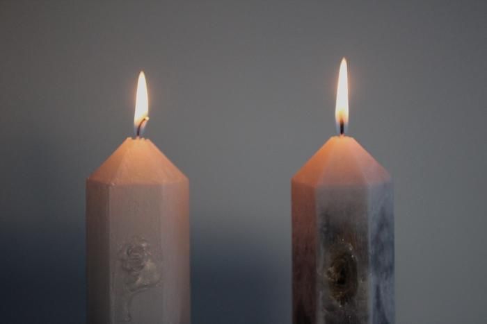 「導きの灯火(黒)」の2つのイメージでキャンドルを作りました。