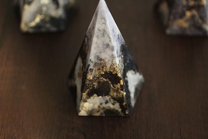 ゴールドの流線を入れた五角錐型、